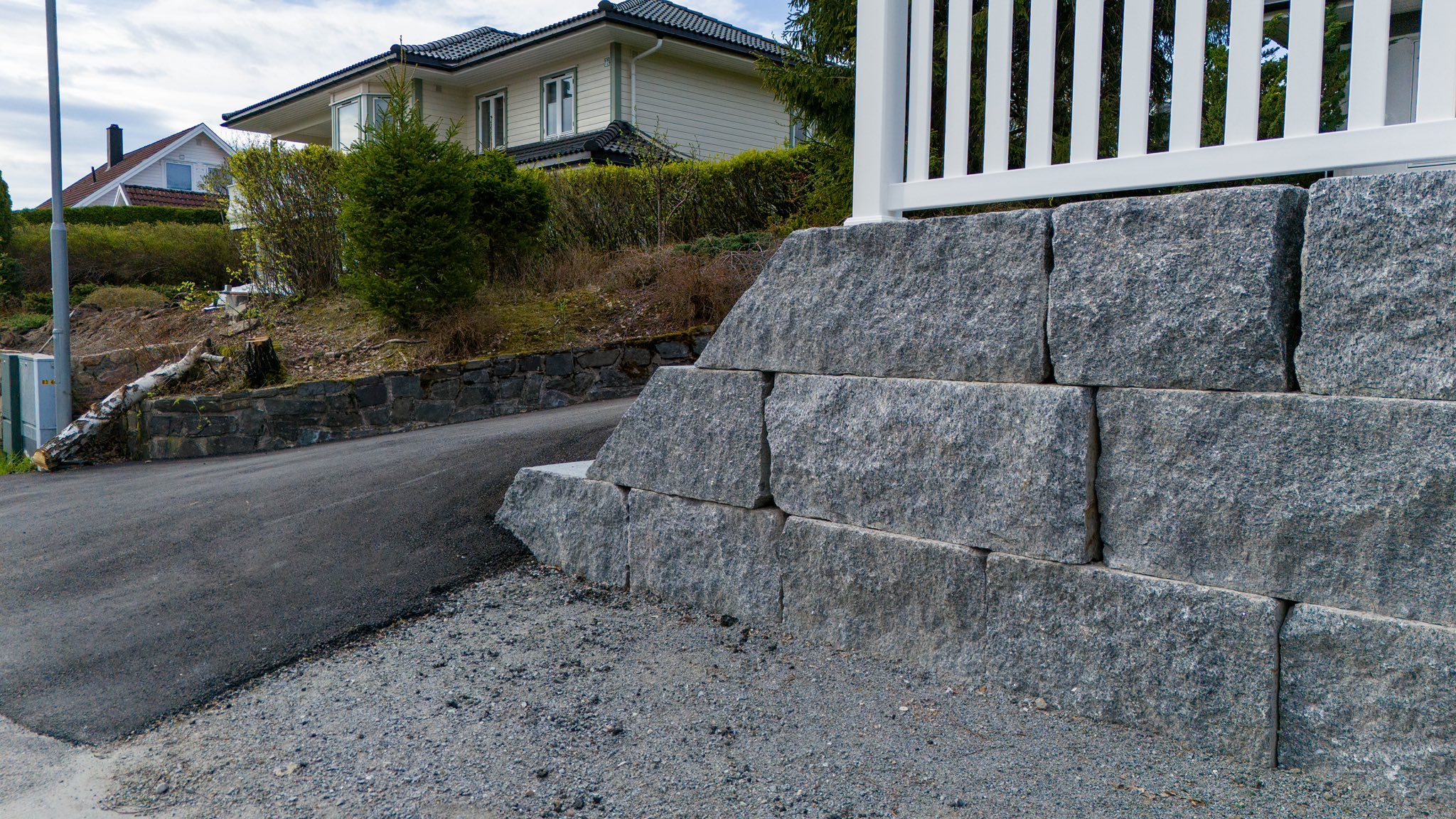 En støttemur er ikke bare en praktisk innretning som skal støtte opp masser. Den bidrar vel så mye med blikkfang og estetikk som den bidrar til å jevne ut høydeforskjeller.